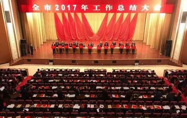 全市2017年工作总结大会在国际会展中心举行,市委副书记、市长张永霞出席并作重要讲话。大会对过去一年涌现出来的一批成绩突出的先进集体和先进个人给予表彰市领导为2017年度经济社会发展综合考核先进集体和先进个人代表颁奖,并兑现了制造业强市和创新驱动发展战略奖励政策。山东宁森环保科技有限公司被授予“经济发展功勋企业”,公司党委书记、董事长杨恒坤被授予“经济发展功勋个人”荣誉称号。