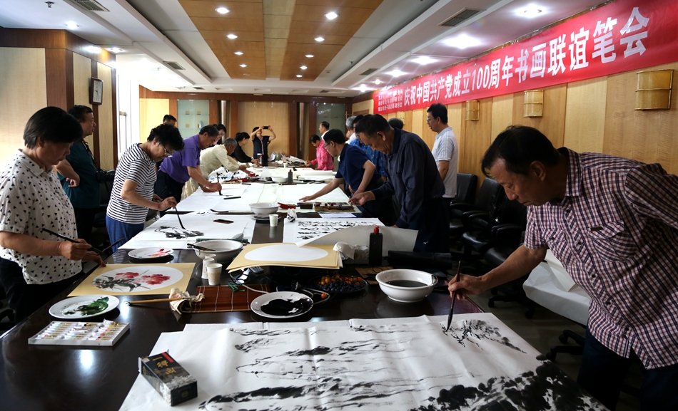 为庆祝中国共产党成立100周年,回顾党的奋斗历程,歌颂美好新时代,助力公司企业文化建设。6月24日,山东宁森环保科技有限公司、烟台市老年书画研究会、烟台市老干部志愿者协会共同举办“庆祝中国共产党成立100周年联谊书画笔会”。本次活动共有18位县处级退休老干部书画家参加。