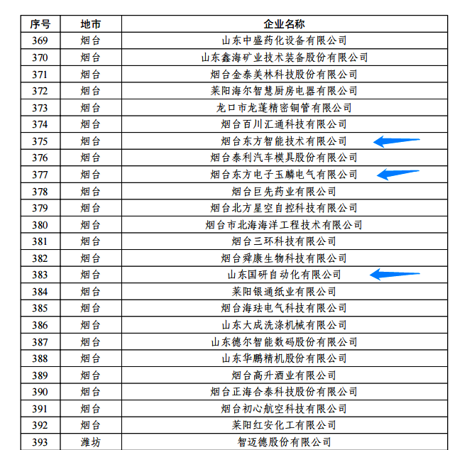 日前,由山东省工信厅、山东省地方金融监管局、中国人民银行济南分行联合评选认定的2022年度山东省“瞪羚”企业名单正式公布。我集团公司的烟台山东宁森环保科技有限公司玉麟电气有限公司、山东国研自动化有限公司、烟台东方智能技术有限公司等三家权属企业入选,认定日期为即日起至2025年12月31日。